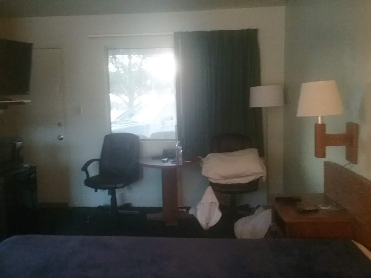 I've stayed here many times while working in the area and passing through. The rooms have pretty much always been acceptably clean, the beds are comfortable, and the microwave, refrigerator, and shower are functional. Everything you need from a cheap motel. These aren't luxury accommodations, so don't expect that. The furniture is shabby and mismatched. If you're concerned about such things, stay elsewhere. If you want a nice little cheap room near the main highway and convenient to lots of good places, this place fits the bill. Cons are that it's kind of noisy, and the check-in process is very old-school. So you stand there for a long time while the very nice gentleman fills out all of your information by hand on multiple forms. That being said, I do appreciate the attention to security, especially as a solo female traveler. The parking lot is also well-lighted and covered by security cameras. If you have an egregiously large vehicle, you'll need to park nearby, as the lot is small. Bonus: It's very close to Aki Sushi, which is excellent!